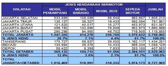 Tabel Jumlah Kendaraan Bermotor Tahun 2008