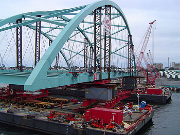 - Obstacle jembatan berupa clearance lebar dan tinggi. Bangunan di atas air adalah obstacle yang tergantung dengan tinggi heavy cargo yang dibawa. Clearance harus dicatat pada kondisi ketinggian air sungai tertentu karena fluktuasi air sungai.