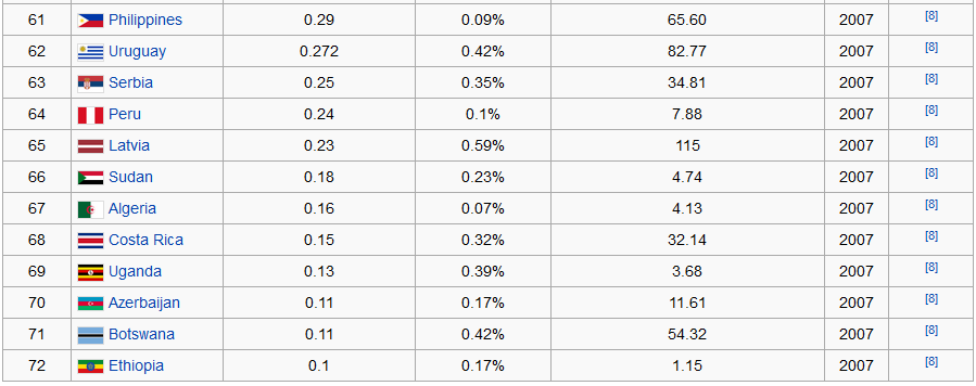 • Nilai dana riset terhadap per kapita Indonesia adalah sebesar 2.88 USD. Nilai ini adalah yang TERKECIL KEDUA setelah Negara ETHIOPIA (1.15 USD). Padahal data Indonesia diambil tahun 2010 dan Ethiopia diambil tahun 2007.