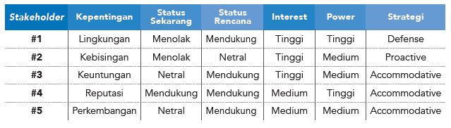 3. Menentukan rencana mitigasi – Selanjutnya adalah membuat rencana mitigasi atas risiko yang mungkin dapat ditimbulkan oleh stakeholder.